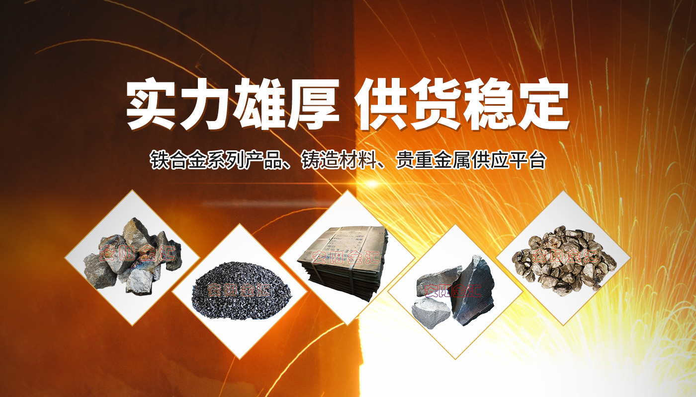安陽市金匯鐵合金有限公司位于我國七大古都之一、甲骨文之鄉——河南安陽,公司自2010年成立以來,多次被安陽市政府評為“重合同、守信用企業”、“誠信經營企業”,2010年5月被上海世博會民企組委會評為上榜民營企業,同年9月我公司產品宣傳廣告被阿里巴巴推薦在央視一套節目連續播出,在同行業反響熱烈,2022年4月公司順利通過ISO9001產品質量體系認證。公司是安陽市鐵合金商會副會長單位、安陽市工商聯副主席單位、安陽市慈善總會副會長單位?! ∥夜鞠等A北地區規模較大的一家銷售鐵合金系列產品、鑄造材料、貴重金屬的民營企業。主要銷售:硼鐵、錳鐵、鉻鐵(高、中、低、微)、硅鐵、孕育劑、硫化鐵、電解錳、稀土硅、稀土鎂、磷鐵、除渣劑、增碳劑、鉬鐵、鎢鐵、釩鐵、鈦鐵、鈮鐵、硅鐵、金屬鉻、鎳板、電解銅等產品。  公司擁有業務團隊、雄厚的實力、完善的服務,努力建設成一站式供應、多元化服務的鐵合金、鑄造材料供應平臺?!  罢\乃德之本、信乃商之根”,我公司就是奉行“客戶為首誠信為上”這個宗旨,贏得了廣大客戶的良好口碑,我們真誠的希望與廣大新老客戶同謀發展,共圖大業!